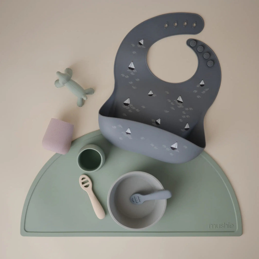¡Explora la magia de la hora de la comida con nuestros divertidos baberos estampados de la colección de silicona de Mushie! Encuentra el diseño perfecto que se ajuste a tu estilo y al de tu pequeño. Este babero no solo es adorable, sino que también es funcional.