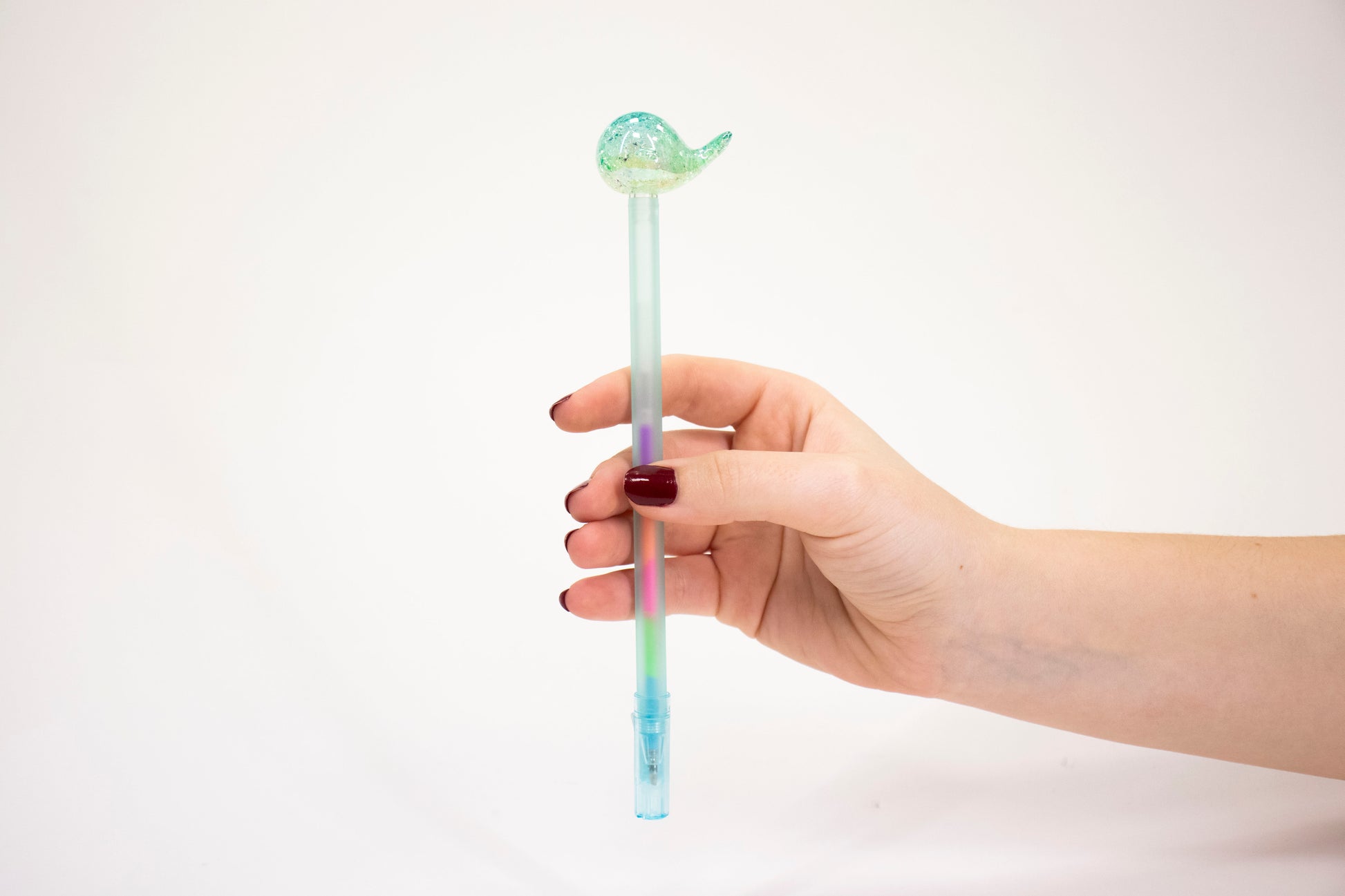 ¡Este bolígrafo multicolor con cuerpo transparente y dominante azul es pura fantasía hecha escritura! Con una adorable ballena que corona su diseño, se convierte en el compañero perfecto para llenar de color deberes, dibujos y aventuras creativas. Cambia de color fácilmente con un clic y dale vida a cada página con un toque mágico. Ideal para mochilas escolares o como regalo especial, su diseño práctico y divertido encantará tanto a peques como a grandes. ¡Perfecto para pequeños artistas modernos! Un accesorio irresistible que une funcionalidad y ternura en un solo trazo. Llévalo contigo a todas partes y haz que cada nota sea una explosión de alegría. ¡Un imprescindible en cualquier estuche con estilo!