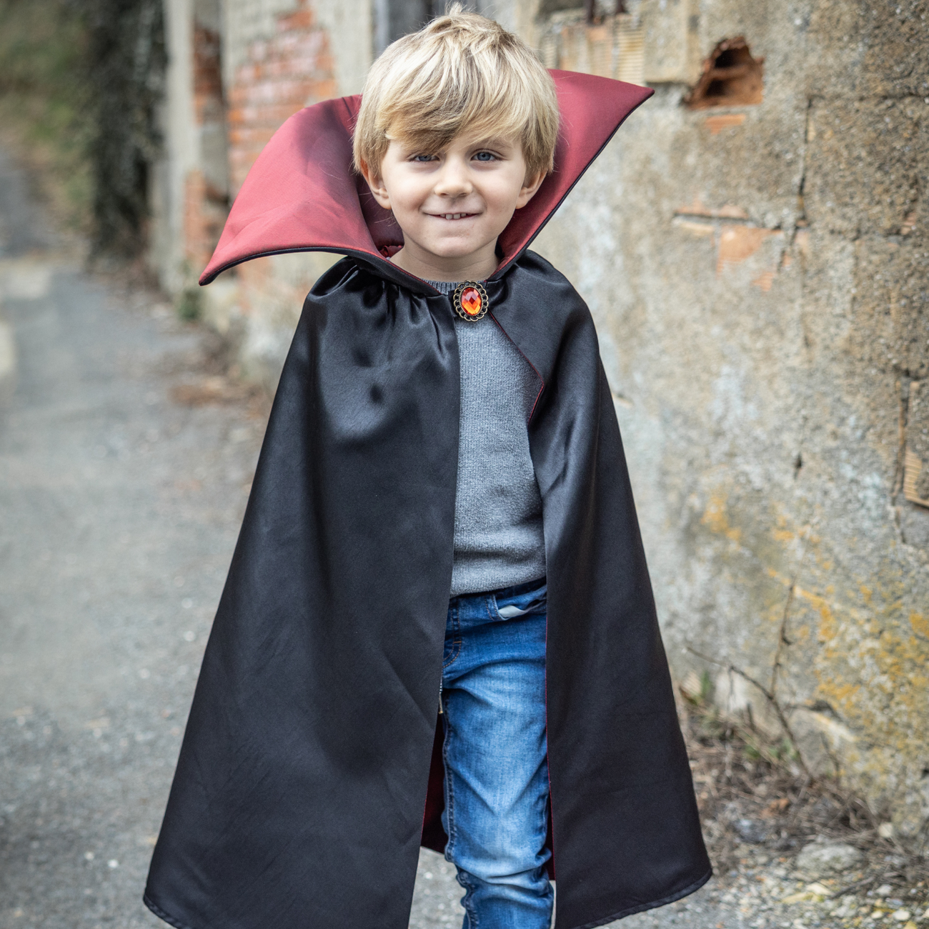 ¡La noche se llena de magia con nuestra espectacular capa de vampiro para niños! Confeccionada en elegante tela negra y forrada en satén rojo brillante, es el accesorio perfecto para convertir cualquier día en una aventura llena de misterio y diversión. Su cuello alto clásico aporta el toque auténtico de los vampiros, mientras que el cierre de velcro con gema roja garantiza comodidad, seguridad y un acabado glamuroso. Ligera, práctica y fácil de poner y quitar, será la aliada ideal para fiestas de disfraces, cumpleaños, Halloween o juegos en casa. Una pieza moderna y única que hará brillar la imaginación de los peques y encantará a mamás y papás que buscan estilo, originalidad y momentos inolvidables.