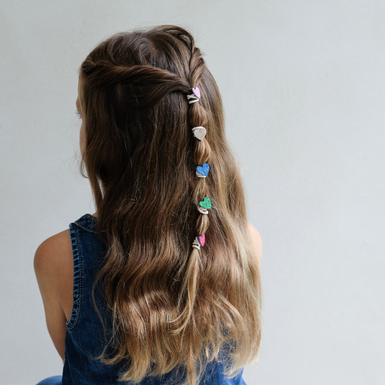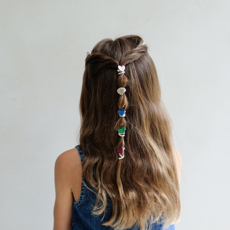 ¡Dale un toque dulce y súper trendy al peinado de tu peque con nuestras mini gomas de corazones! Estos pequeños accesorios son el detalle perfecto para mantener el cabello recogido con estilo, cómodos y suaves para no dañar ni tirar del cabello delicado. Su diseño colorido y adorable llena de alegría cualquier look diario o de fiesta, haciendo que tu hijo destaque con un toque moderno y divertido. Además, son fáciles de poner y quitar, ideales para mamás y papás con poco tiempo que buscan practicidad sin renunciar a la moda. ¡Un must para peinados rápidos, bonitos y llenos de amor que encantarán a grandes y pequeños!