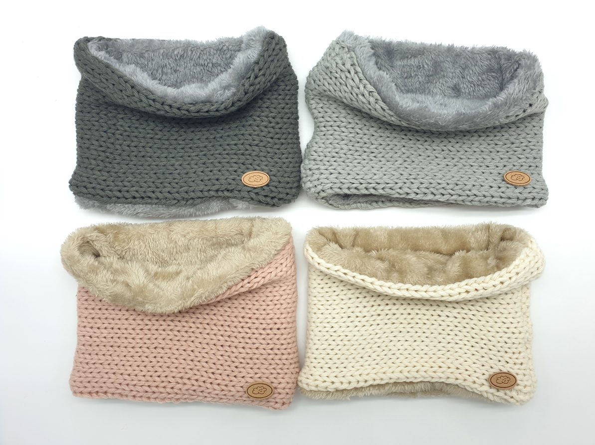 ¡Dale a tus pequeños un abrazo de suavidad y estilo con nuestros Cuellos de Punto Grueso con Forro de Pelo Acrílico a Tono! Están diseñados para mantener calentitos a tus pequeños en los días más frescos con un forro de pelo acrílico suave y acogedor.