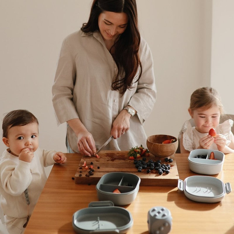 La fiambrera de Mushie es la caja perfecta para las comidas fuera de casa. El separador separará los distintos tipos de alimentos y los guardará de forma segura hasta la hora de comer gracias a los compartimentos incorporados y a la tapa hermética. Dentro de la fiambrera encontrará un tenedor y una cuchara para ayudar al niño a comer.